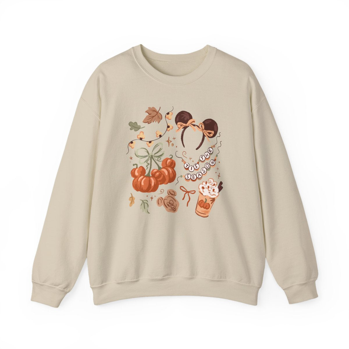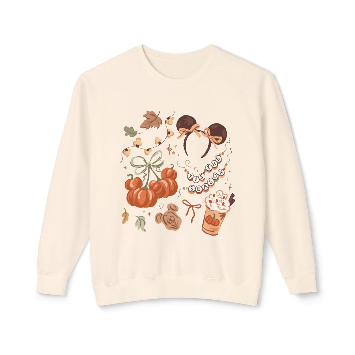 This crewneck features autumn park inspired treats and accessories! Processing time is 5-10 business days.