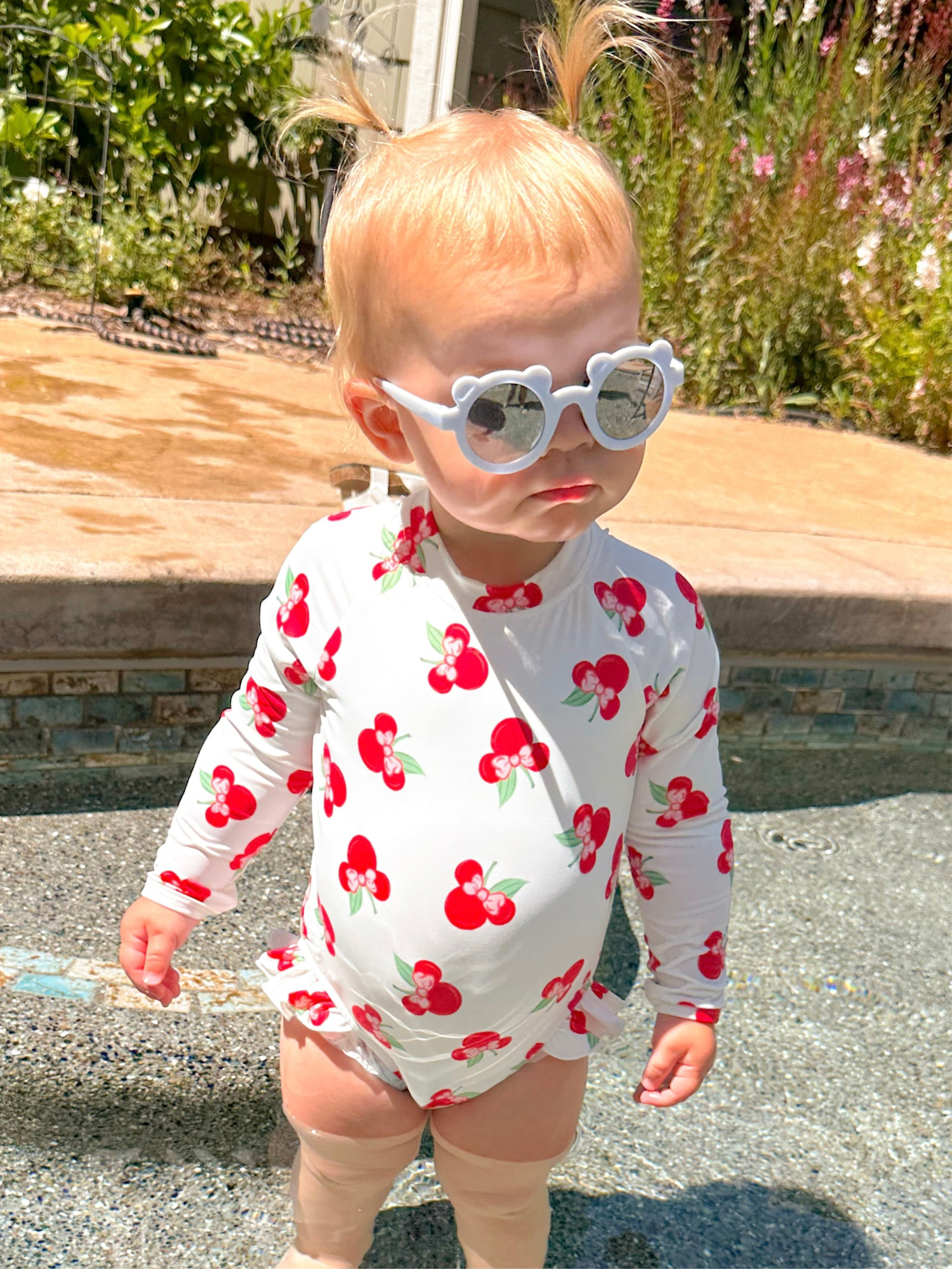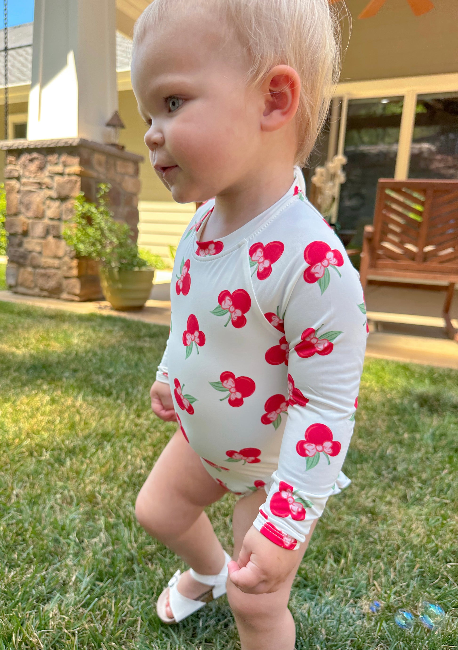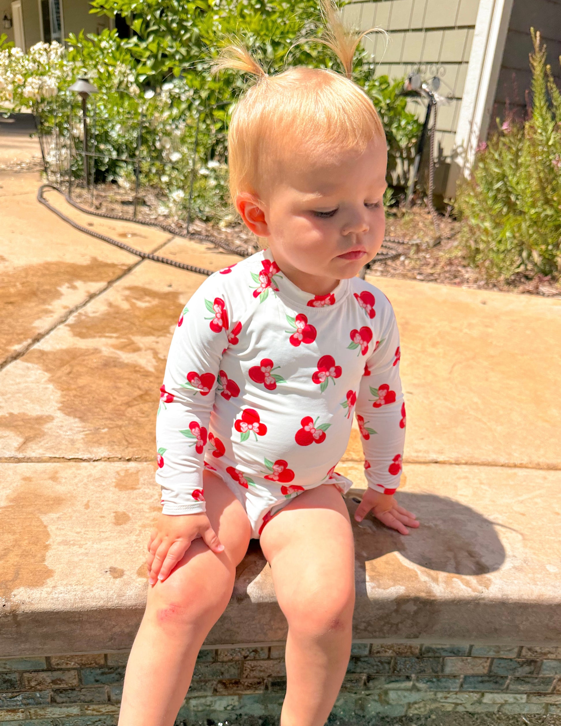 Sweet, sun-safe, and summer-ready! This adorable one-piece features a magical cherry print and thoughtful details for all-day comfort and protection!